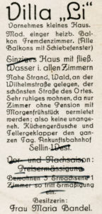 Im Jahre 1924 wechselt das Eigentum an Frau „Bandel, Ehefrau Maria, geb. Königsmann“ (Auszug aus dem Grundbuch). Sie hat die Villa Li weiter als Pension betrieben.